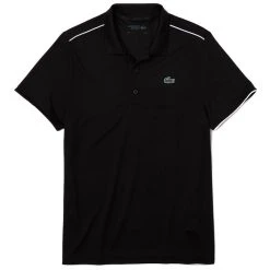 Polo Lacoste Sport respirant uni noir blanc