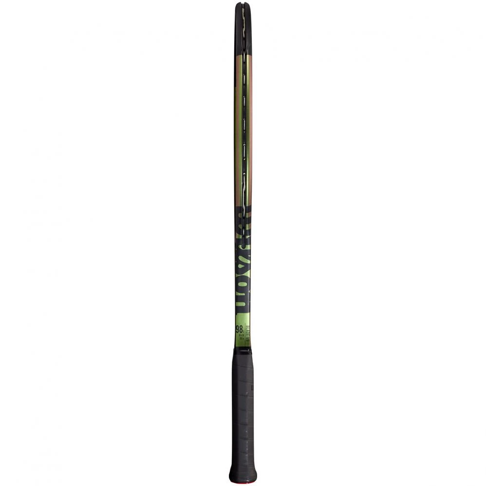 Avec son nouveau design caméléon novateur, la raquette Wilson Blade 98S V8 s’inspire de la nature en passant du vert au cuivre selon l’angle de vue. Conçue pour fournir un maximum d’effet, cette raquette est la seule des Blade V8 à être équipée de la technologie Spin Effect qui permet d’augmenter la rotation de balle. Sa composition en Braided Graphite et Basalt lui permet d’être flexible et de fournir un meilleur toucher alors que son plan de cordage équipé du Parallel Drilling lui permet de bénéficier d’un sweetspot élargi. Son manche est aussi équipé de la technologie Top Grip Taper pour une prise en main optimale.