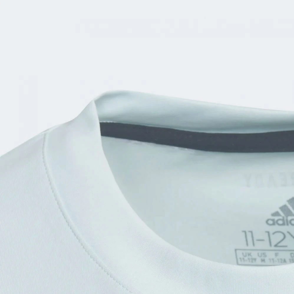 Le t shirt Adidas Junior Club 3 Stripes bleu clair en détail