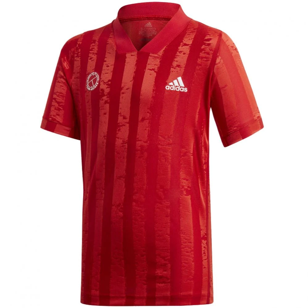 Le look inspirĂ© du football donne au t shirt de tennis pour enfant Adidas FreeLift un style unique ! Adidas a voulu rendre hommage Ă Londres qui accueille l’Euro et Wimbledon dans un Ă©tĂ© trĂšs sportif.