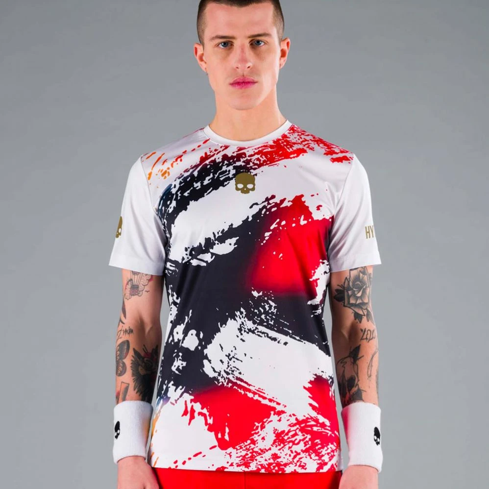 Adoptez la griffe Hydrogen et profitez d’un style unique avec le T-Shirt Brush Tech de la marque Italienne. Ce nouveau coloris rouge, orange et noir fait partie de la capsule USA.