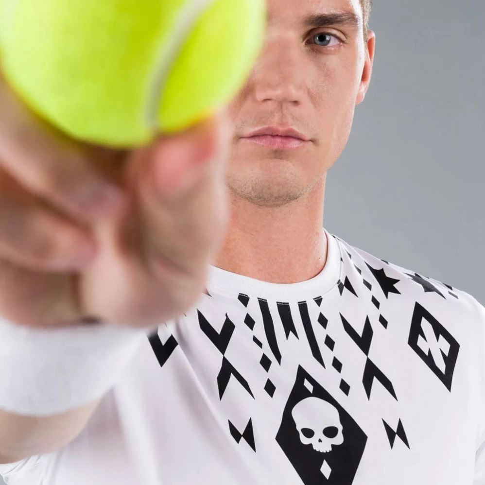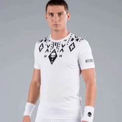 Issu de la collection 2022, le t-shirt Tribal Tech se caractĂ©rise par des motifs inspirĂ©s des tribus ancestrales, tandis que les manches portent le logo et l’Ă©criture classiques Hydrogen.