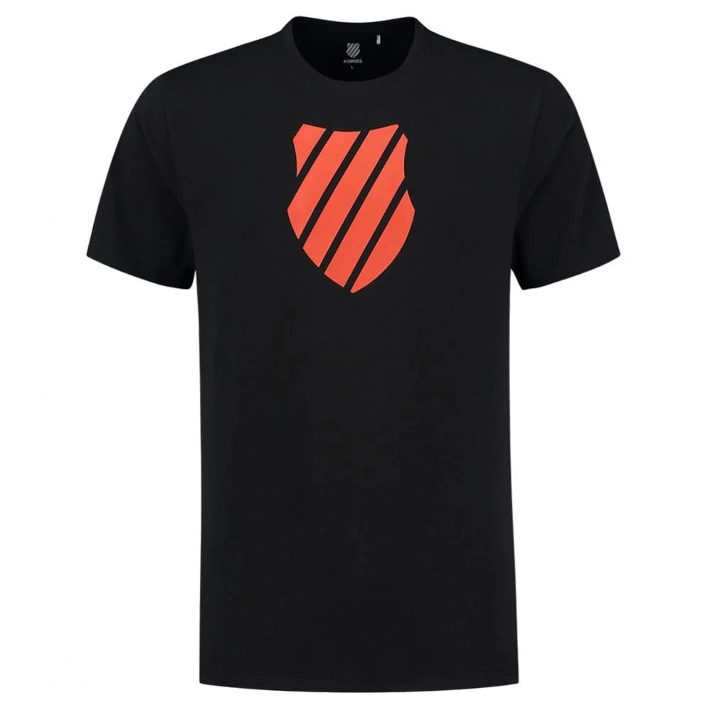 Vous retrouverez le logo bouclier K-Swiss en grand sur la poitrine.